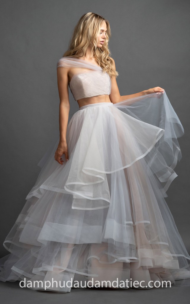 ĐẦM DẠ TIỆC CROP TOP CHÂN VÁY XẾP TẦNG LỘNG LẪY NN7018