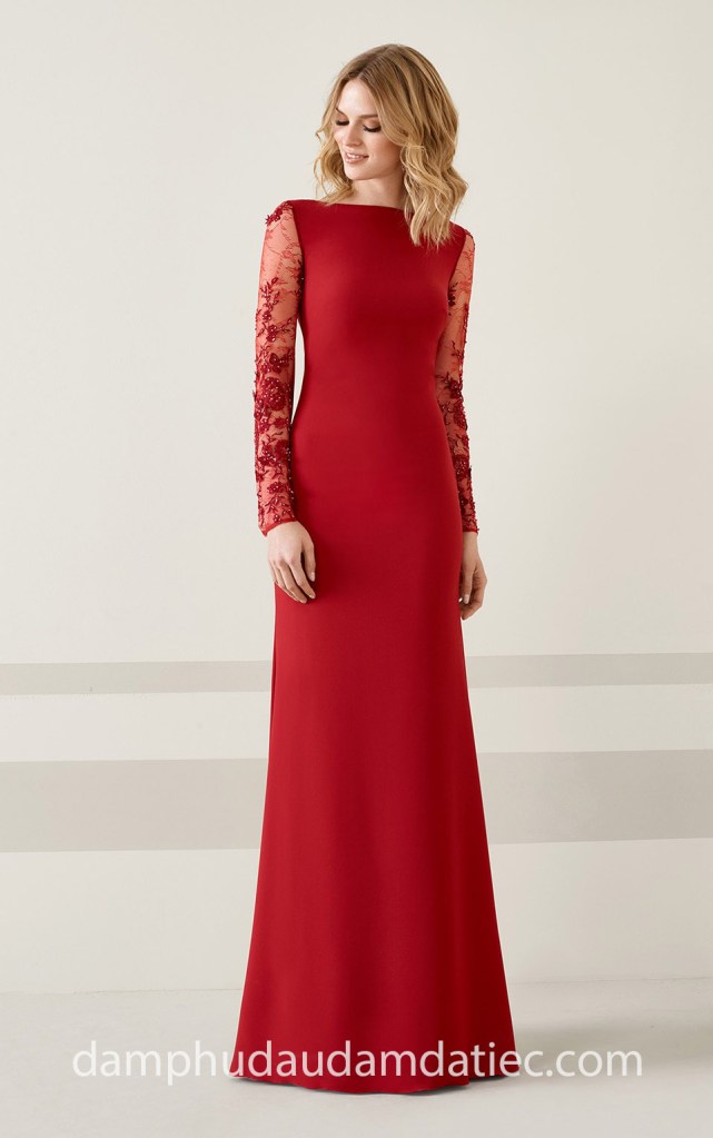 ĐẦM DẠ TIỆC TAY DÀI ĐÍNH ĐÁ ĐỎ RỰC RỠ NN7025