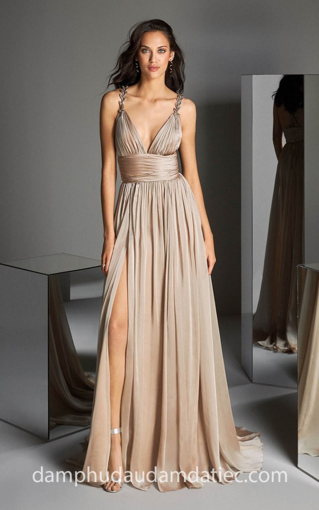 ĐẦM DẠ TIỆC 2 DÂY ĐÍNH ĐÁ XẺ TÀ SEXY NN7045