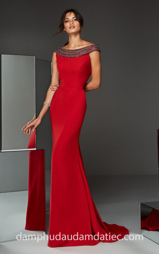 ĐẦM DẠ TIỆC ĐUÔI CÁ CỔ ÁO ĐÍNH ĐÁ SANG TRỌNG NN7100