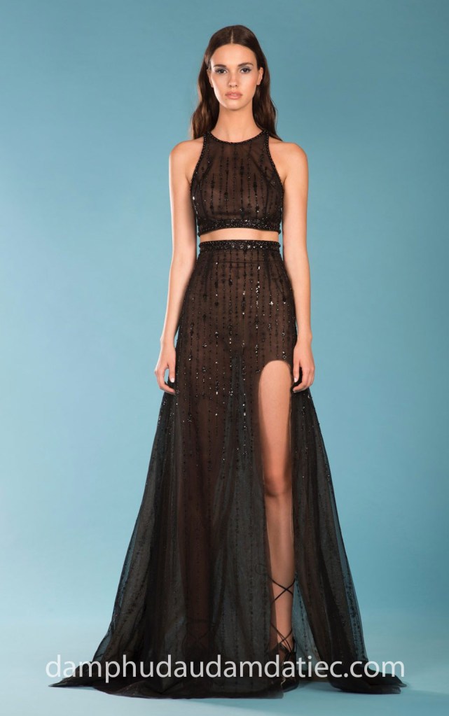 ĐẦM DẠ TIỆC CROP-TOP XẺ TÀ ĐÍNH ĐÁ SEXY NN7177