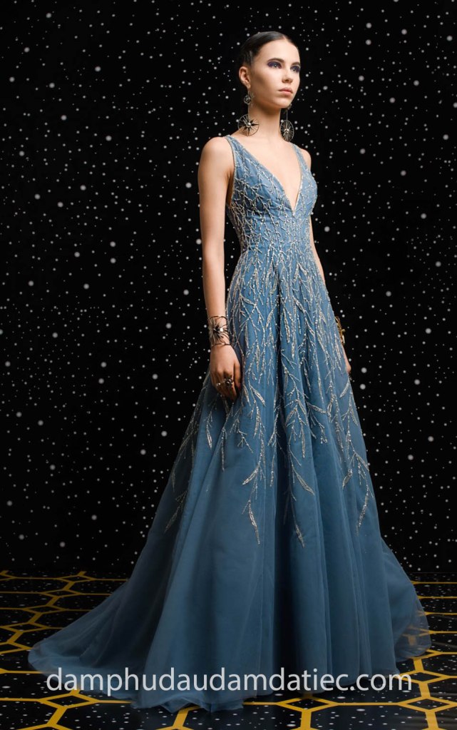 ĐẦM DẠ TIỆC XẺ NGỰC ĐÍNH ĐÁ SANG TRỌNG NN7206