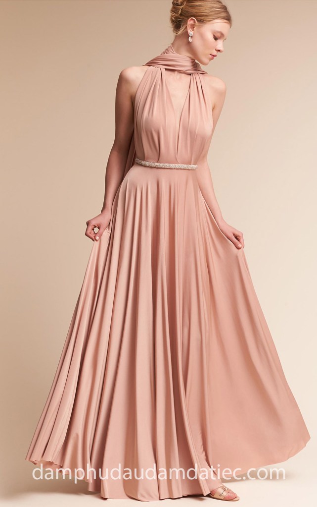ĐẦM DẠ TIỆC CỔ YẾM THẮT LƯNG ĐÍNH ĐÁ SANG TRỌNG NN7311