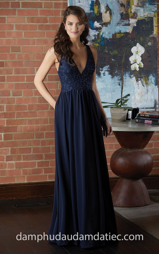ĐẦM PHỤ DÂU DÁNG SUÔN XẺ NGỰC SÂU NN7380