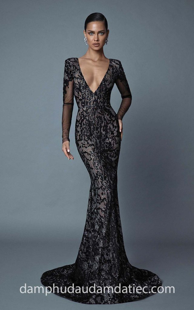 ĐẦM DẠ TIỆC ĐUÔI CÁ TAY DÀI ĐIỂM KIM SA LẤP LÁNH NN7391