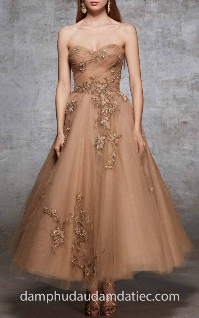 ĐẦM DẠ TIỆC TEA-LENGTH TÙNG XOÈ ĐÍNH KẾT SANG TRỌNG NN7507
