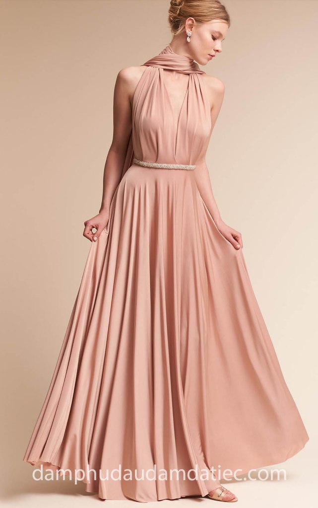 ĐẦM DẠ TIỆC SUÔN THẮT NƠ ĐÍNH ĐÁ NN7530