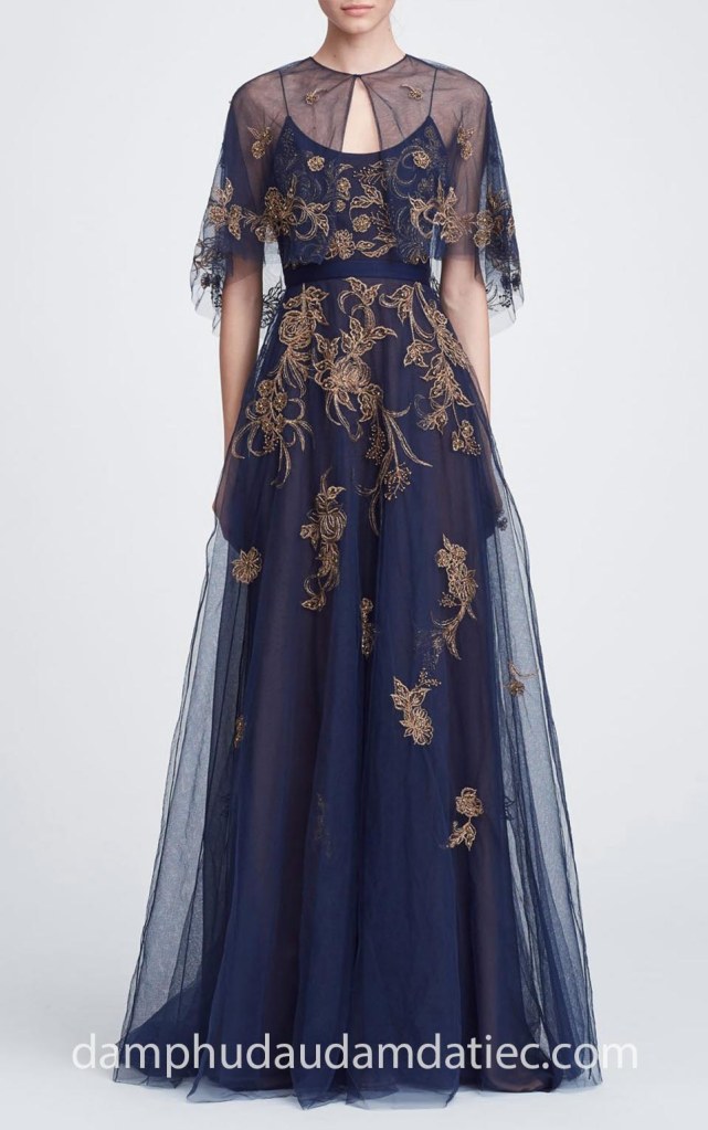 ĐẦM DẠ TIỆC CAPELET PHỐI REN NN7550