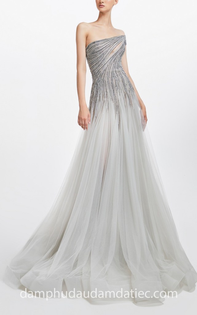 ĐẦM DẠ TIỆC LƯỚI LỆCH VAI XÁM KHÓI CÁ TÍNH NN7775