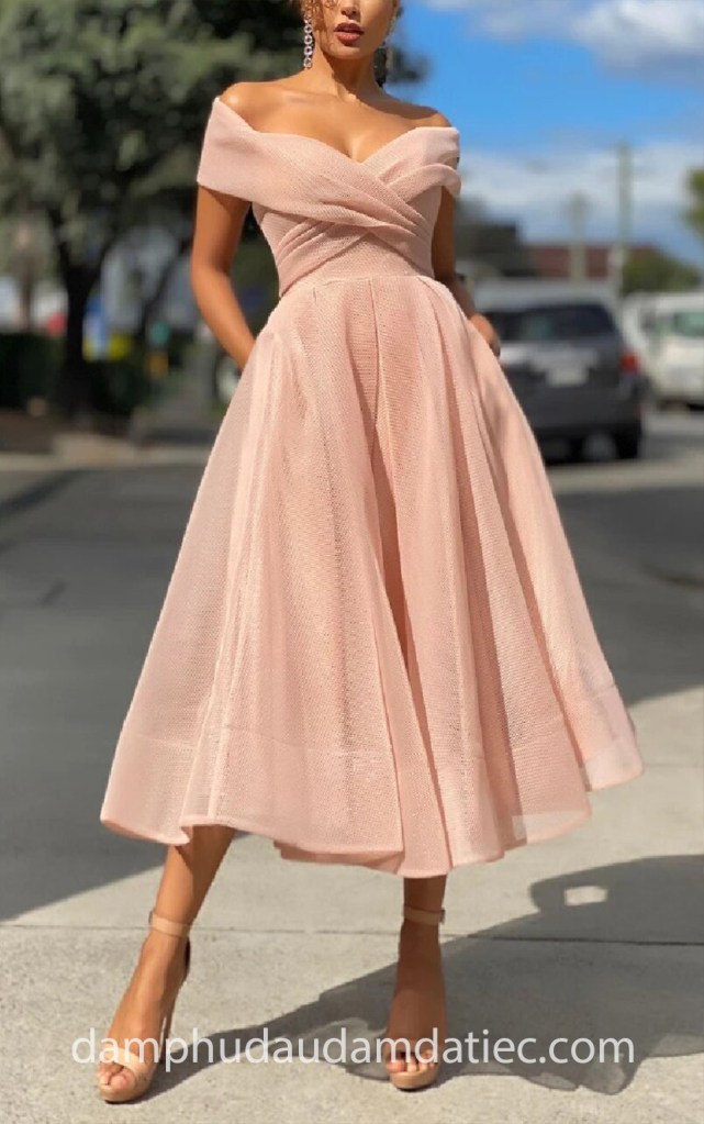 ĐẦM DẠ TIỆC MIDI DRESS TRỄ VAI MÀU DA GỢI CẢM NN7796