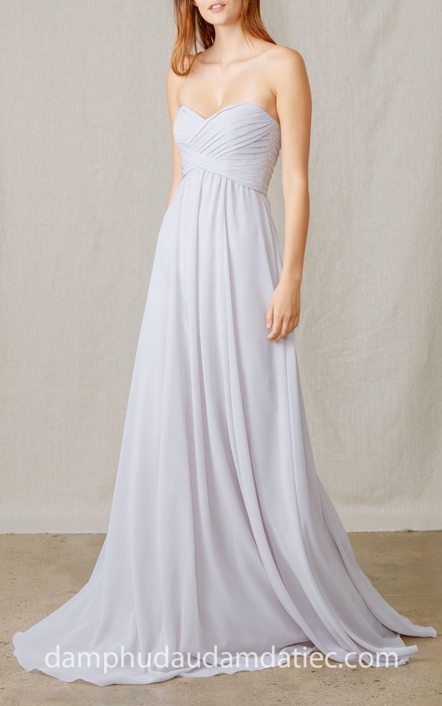 2. Đầm phụ dâu dáng suôn cúp ngực xếp li