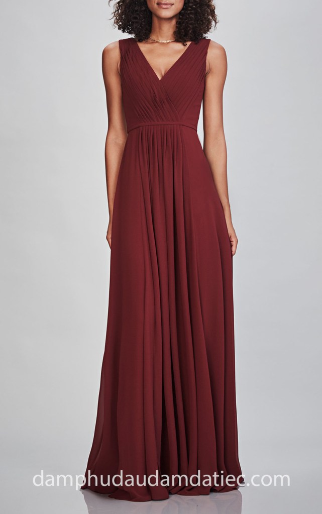 1. Đầm phụ dâu suôn cổ V xếp li tinh tế