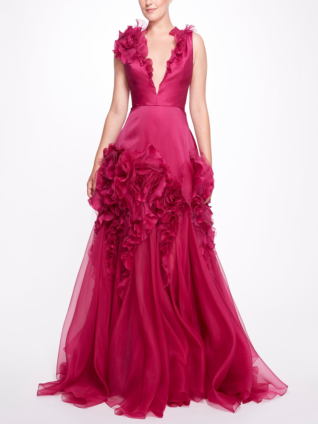 Những mẫu đầm dạ hội hoa 3D là sự lựa chọn hoàn hảo cho mùa xuân, các chi tiết đính kết trang trí mô phỏng hoạ tiết hoa lá nổi bật đã trở thành xu hướng thịnh hành nhất cho dịp xuân hè 2022. Diện lên người chiếc váy dạ hội màu mận chín đến từ thương hiệu Marchesa được trang trí bèo tầng xếp hoa 3D, chắc chắn bạn sẽ trở thành nàng thơ lãng mạn nhất cho những buổi tiệc ngoài trời.