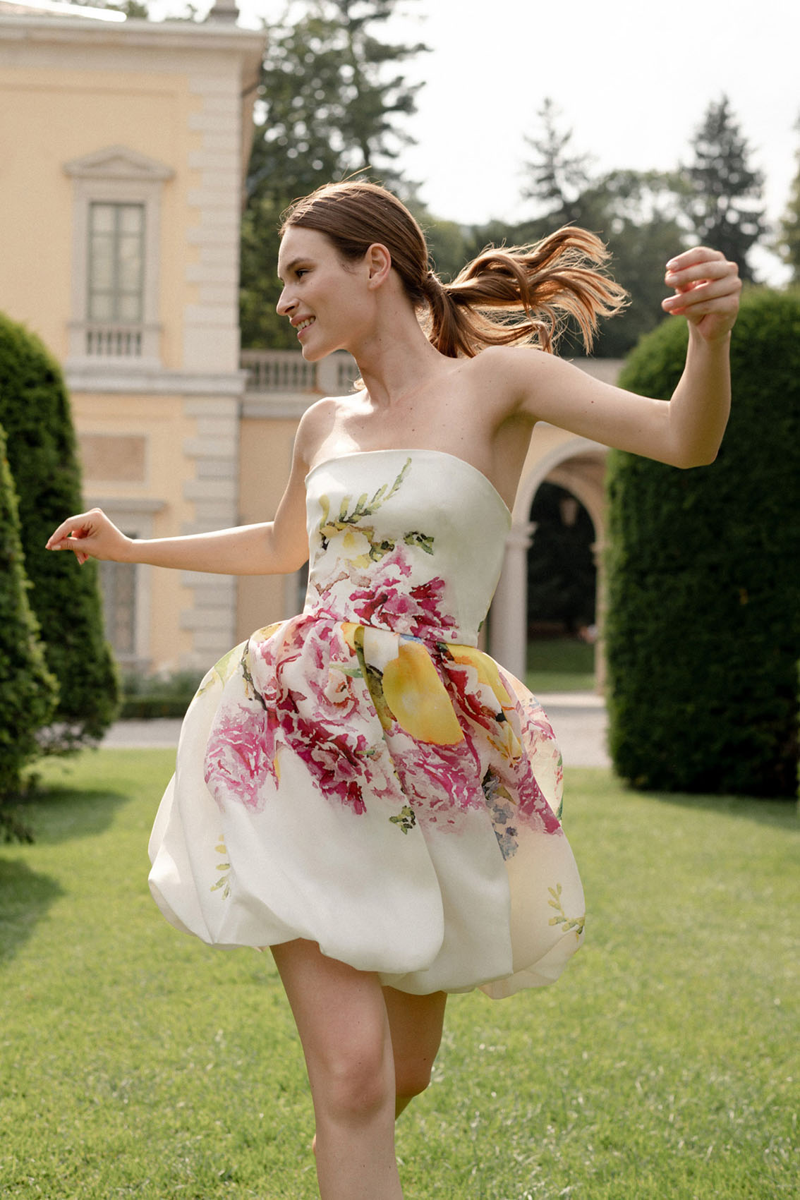 Mùa xuân 2022 đánh dấu sự xuất hiện của hàng loạt mẫu đầm dự tiệc ngắn vô cùng xinh xắn. Chiếc váy đi tiệc mini dress nằm trong BST Resort xuân hè 2022 của Monique Lhullier xuất hiện nổi bật với hoạ tiết hoa trái mùa xuân ngọt ngào được in trên dáng váy xoè balloon skirt đầy bay bổng. Đây sẽ là lựa chọn tuyệt vời cho buổi tiệc cocktail trong vườn nhà của bạn.