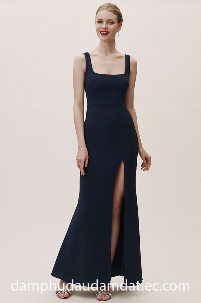 Ngoài ra, xu hướng đầm dự tiệc cổ vuông cũng đang rất được các quý cô ưa thích trong năm 2022 bởi sự thanh lịch, thêm vào đường xẻ tà khoe đôi chân thon thả.