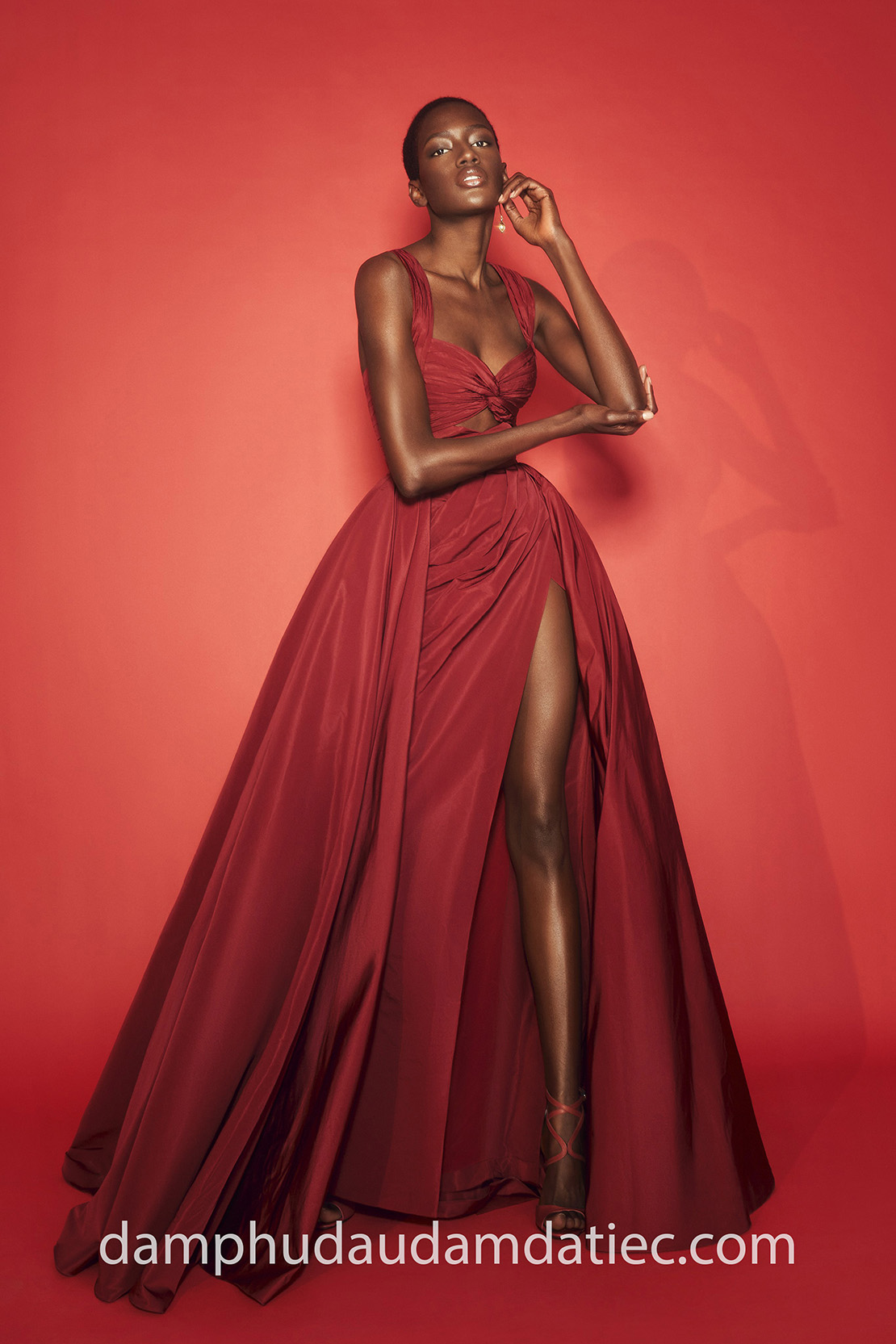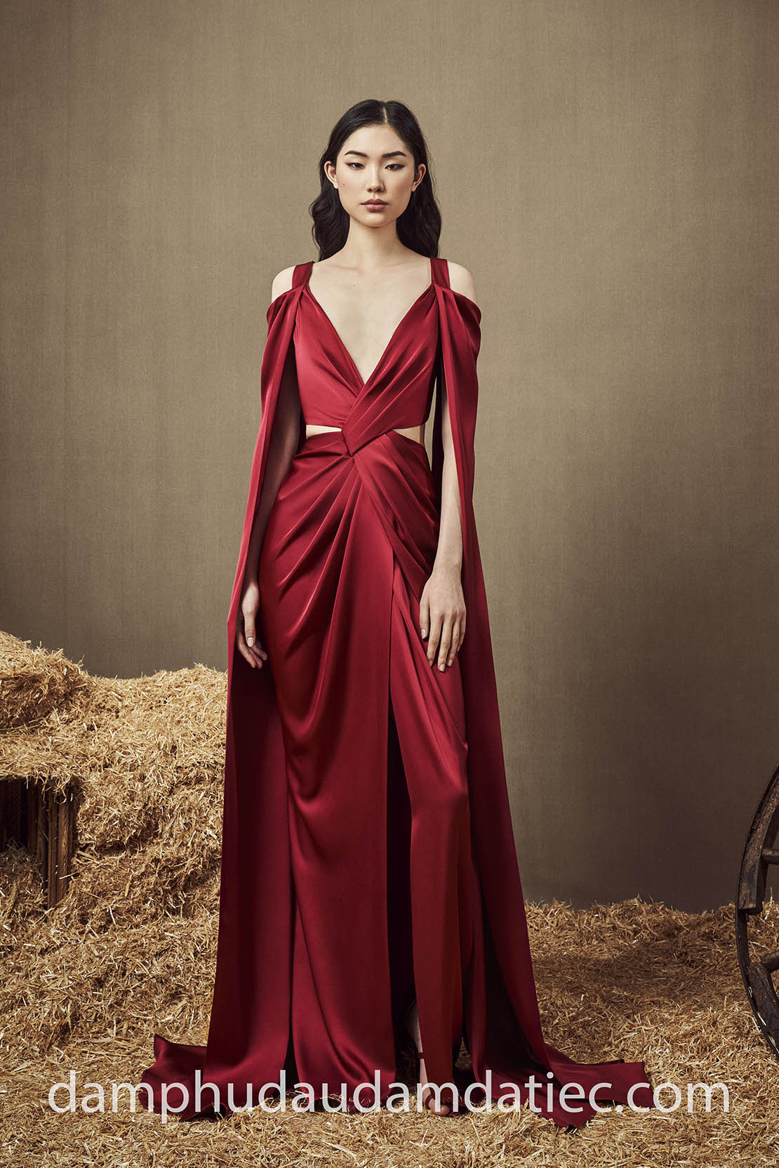 Những chiếc đầm dạ hội 2 trong 1 cũng là ‘bộ nhận diện thương hiệu’ của nhà Zuhair. Sang đến mùa Thu Đông 2022, mẫu đầm dự tiệc với tone màu đỏ rượu này chắc chắc sẽ giúp bạn trở thành nữ hoàng của mọi sự kiện. Phom dáng đuôi cá với vai trễ quý phái khoe trọn đường cong ba vòng được trang hoàng lộng lẫy với kỹ thuật đính kết đỉnh cao, kết hợp cùng tùng váy rời tạo điểm nhấn ấn tượng.