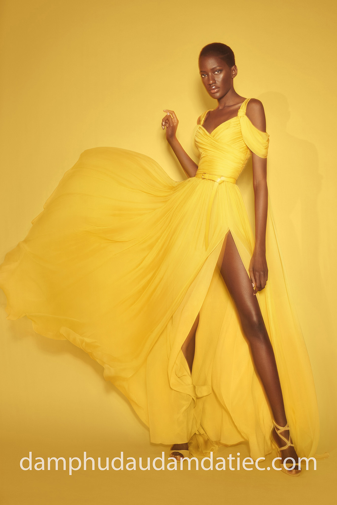 Sang đến mùa Thu Đông 2022, mẫu đầm đi tiệc màu vàng này sẽ giúp bạn hoàn toàn nổi bật trong tất cả các đêm dạ tiệc. Chất vải voan bay bổng cũng rất phù hợp với tiết trời vào thu.