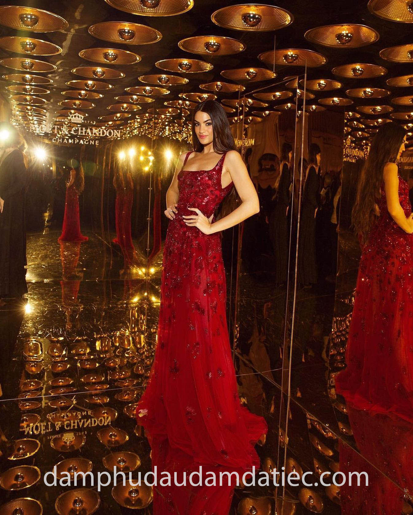 ‘Thiên thần nội y’ Sara Sampaio hớp hồn mọi ánh nhìn khi xuất hiện lộng lẫy trong mẫu đầm dạ hội công chúa dự thảm đỏ từ nhà Zuhair. Thực hiện trên chất vải lưới màu đỏ nổi bật, mẫu thiết kế càng thêm lung linh với những chi tiết đính kết tạo hiệu ứng pháo hoa bùng nổ trên người nàng công chúa.
