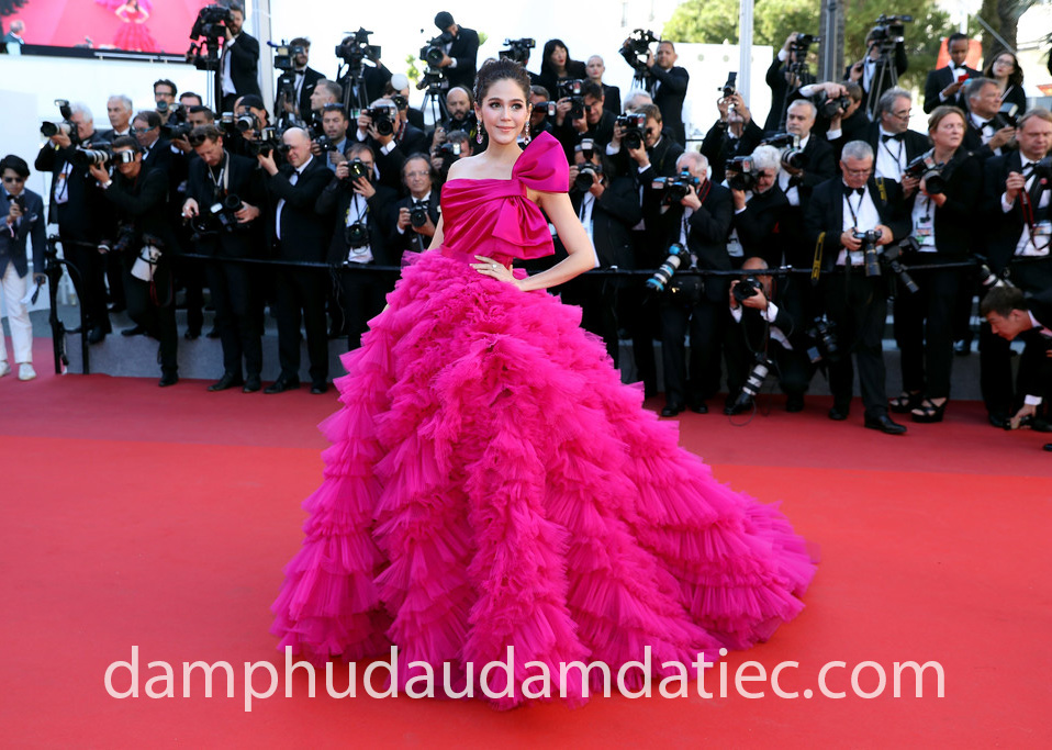 Zuhair Murad cũng là thương hiệu ‘gây mê’ với những ngôi sao đình đám châu Á. Được mệnh danh là ‘nữ hoàng thảm đỏ châu Á’, ‘bông hồng lai’ nức tiếng xứ Thái – Chompoo Araya đã khiến công chúng mãn nhãn khi xuất hiện trong bộ váy dạ hội phù phiếm nhà Zuhair. Thiết kế nổi bần bật với gam màu hot pink hút mắt, thân áo lệch vai tạo hình nơ ngọt ngào cùng tùng váy xếp bèo tầng hoành tráng.
