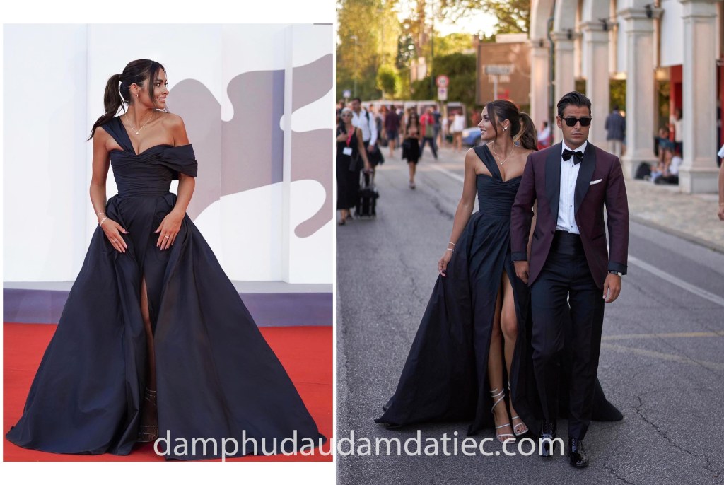 Người đẹp Giulia Gaudino đầy bí ẩn khi đi dự tiệc event trong bộ cánh Zuhair Murad. Thiết kế màu đen ấn tượng với phom váy dáng suôn ôm gọn body, xẻ tà khoe chân thon kết hợp cùng tùng váy lộng lẫy bên ngoài.