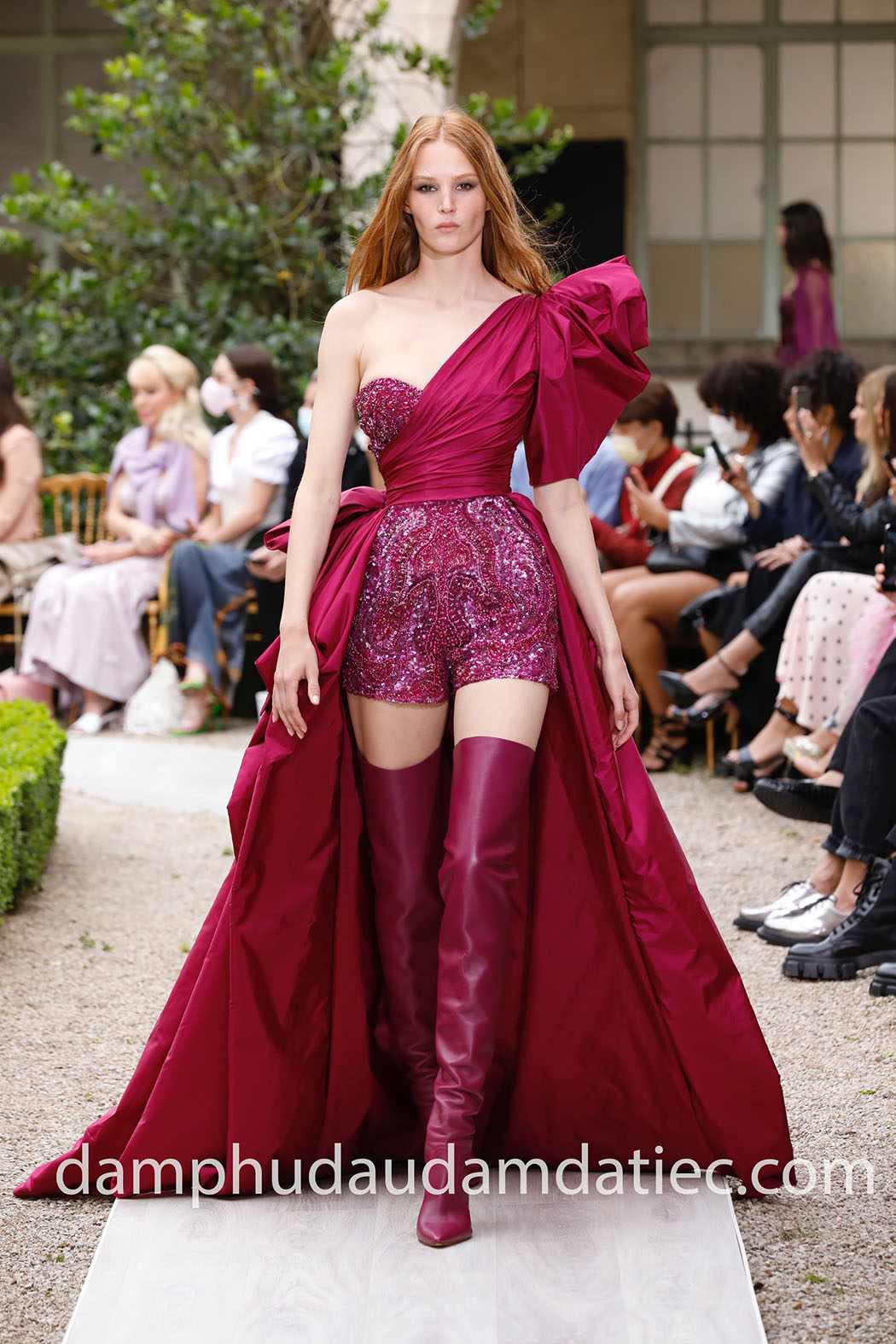 Trước đó, Zuhair Murad đã giới thiệu một mẫu thiết kế khuấy đảo mùa Xuân Hè 2022 với kiểu đầm dự tiệc mini dress đính kết lấp lánh, kết hợp tay áo lệch vai satin cùng tùng váy xoè hoành tráng, phối boots cao qua gối khiến bất kỳ cô gái nào cũng có thể trở thành một fashionista chính hiệu.