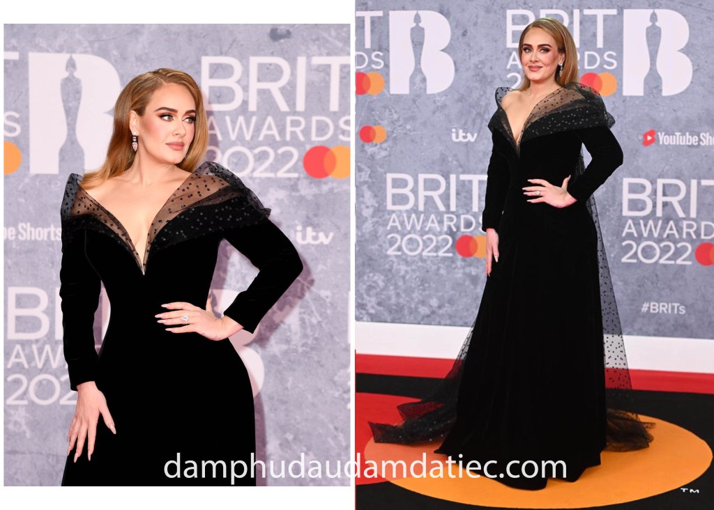 Giọng ca vàng Adele quý phái và đầy bí ẩn khi diện lên người mẫu đầm dự tiệc cao cấp từ thương hiệu Giorgio Armani Privè, tại lễ trao giải Brit Awards. Thiết kế màu đen tuyền có tay áo dài trang trọng với điểm nhấn cổ áo trễ nải khoe khéo vòng một đẫy đà của nữ danh ca nổi tiếng thế giới.