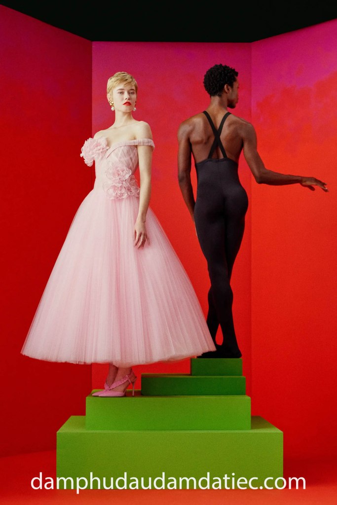 Để xuất hiện trong những buổi tiệc có phần trang trọng, hãy chọn cho mình mẫu đầm dạ hội công chúa khoe ngực đến từ thương hiệu cao cấp Carolina Herrera. Thiết kế với phom dáng tea length dễ mặc có tùng xoè xếp li xinh xắn trên tone màu hồng pastel ngọt ngào, thân áo corset hạ eo trễ vai vừa quý phái lại giúp bạn khoe khéo khuôn ngực đẹp được trang trí lãng mạn với hoa 3D được thực hiện thủ công.