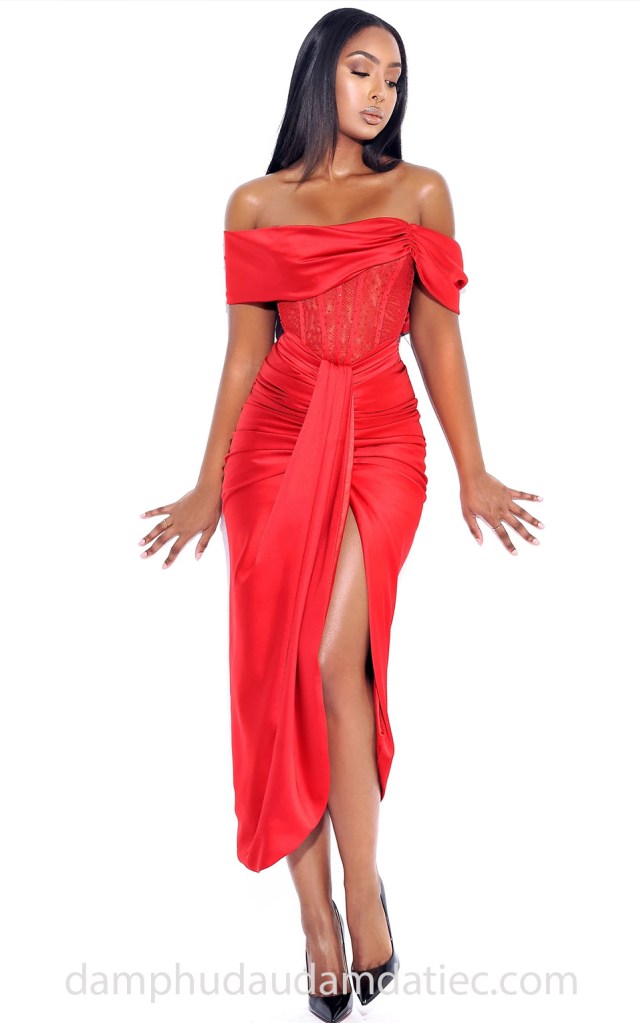 Đầm dự tiệc midi dress với những gam màu nổi bật, xẻ tà sexy cũng đang rất được ưa chuộng. Bạn có thể tuỳ chọn kiểu dáng từ cổ trễ để khoe ngực vừa phải mà vẫn kín đáo, hay cúp ngực để khoe trọn vòng một căng tràn.