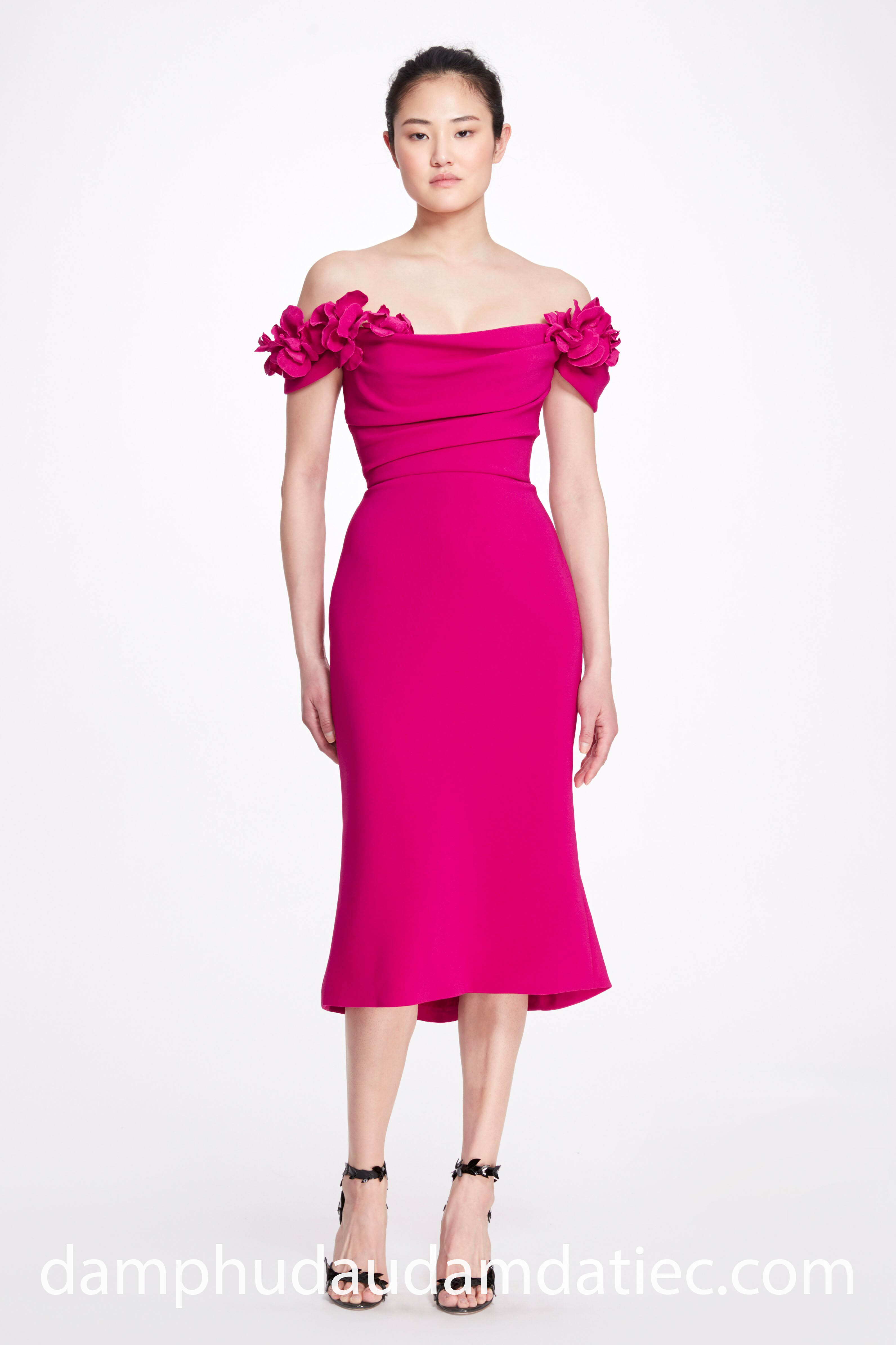 Đầm đi tiệc midi dress đang trở thành trào lưu thịnh hành bởi sự thoải mái cho mọi hoạt động, đồng thời rất dễ di chuyển. 2 thiết kế đến từ nhà mốt Jenny Packham với phần cổ áo xếp li tinh tế, tạo hình nơ nổi bật sẽ khiến bạn tự tin hơn với vòng một vừa đầy đặn lại vô cùng nữ tính của mình.