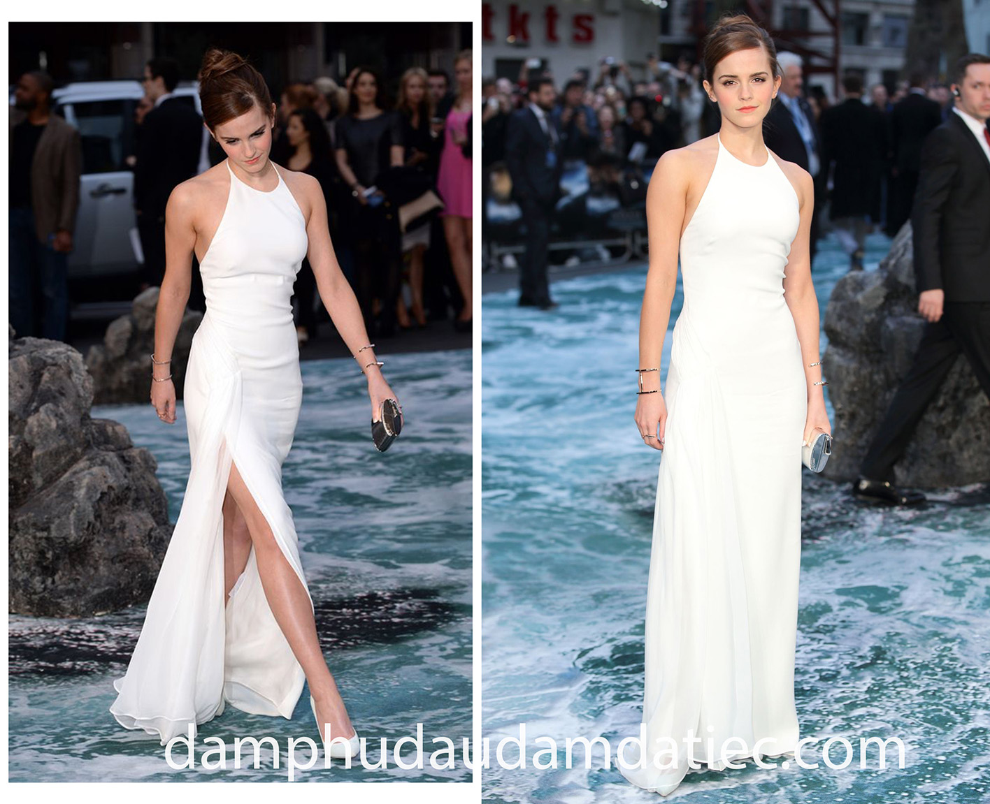 Người đẹp Emma Watson vốn được biết đến với thân hình mảnh khảnh cùng vòng một khiêm tốn. Cô nàng đã rất thông minh trong việc lựa chọn mẫu đầm đi tiệc đơn giản từ Ralph Lauren với cổ áo yếm giúp cân đối đôi vai, đánh lạc hướng sự chú ý vào vòng một và khoe khéo đôi chân thon thả.
