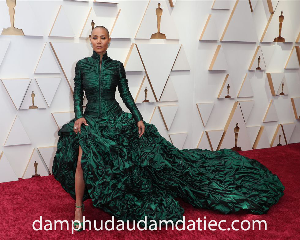 Tất nhiên, “đặc sản” Oscar không thể thiếu sự góp mặt của những mẫu đầm dạ hội Haute Couture phù phiếm và hoành tráng. Nữ diễn viên Jada Pinkett Smith xuất hiện đầy quyền lực trong thiết kế ấn tượng của Jean-Paul Gaultier. Ứng dụng kỹ thuật cắt may xếp li tinh tế, đi cùng tùng váy màu xanh dún bèo lộng lẫy đã giúp nữ diễn viên càn quét thảm đỏ năm nay.