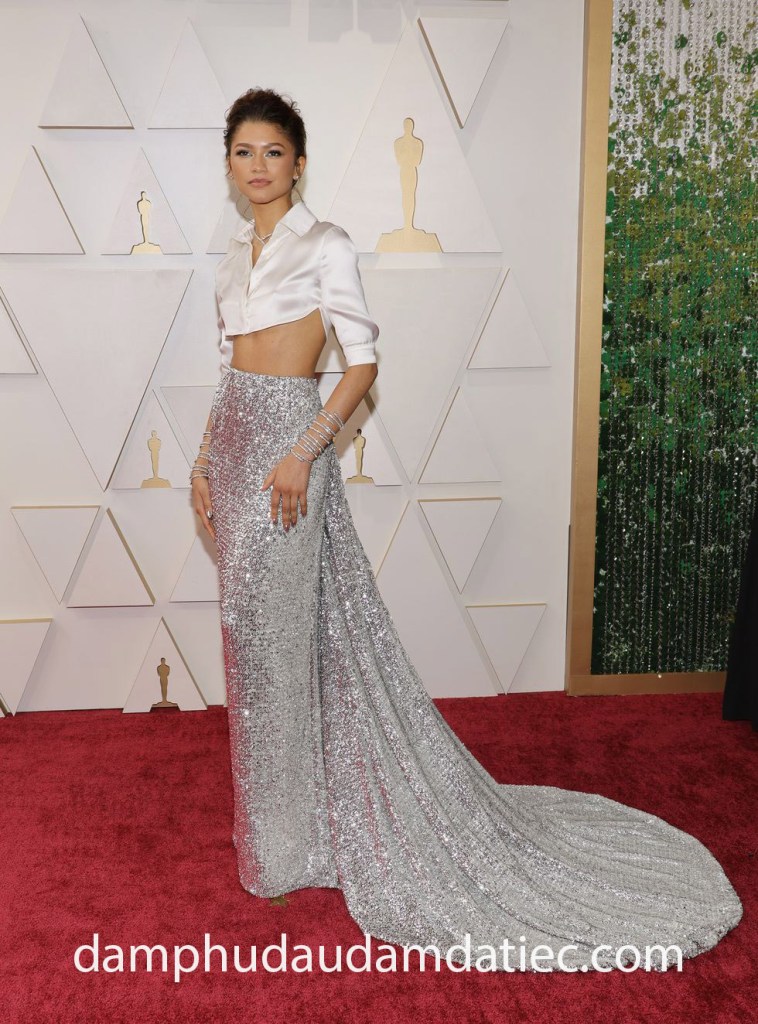 “Biểu tượng thời trang Gen Z” Zendaya vượt qua mọi khuôn khổ trong bộ đầm dự sự kiện thảm đỏ của nhà mốt Valentino. Một chiếc áo crop top màu trắng không phải là điều đầu tiên bạn nghĩ đến việc tham dự giải Oscar, nhưng hãy để Zendaya biến nó thành hiện thực khi phối cùng chân váy sequin ánh bạc chói lọi. Chiếc áo midriff top màu trắng tinh nghịch đối lập với chân váy lấp lánh bên dưới, một lần nữa chứng minh ngôi sao của siêu phẩm điện ảnh Dune (Xứ Cát) là bậc thầy về trang phục trên thảm đỏ.