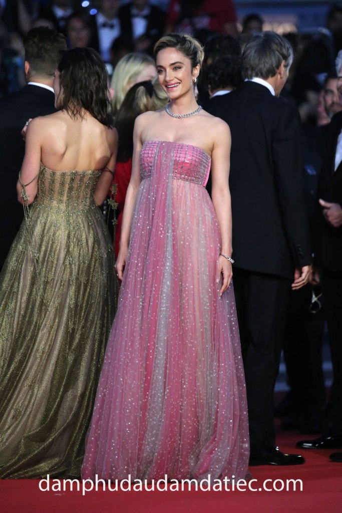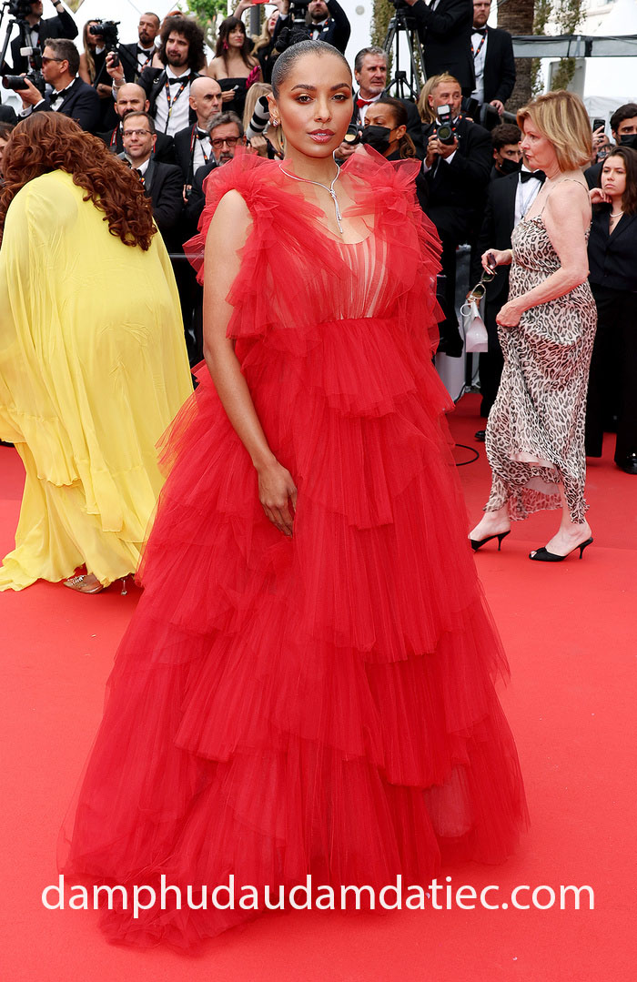 Đến tham dự liên hoan phim Cannes 2022, Nữ diễn viên Lucie Zhang xinh đẹp như một nàng thơ bí ẩn trong bộ đầm dạ hội tùng lưới được nhà mốt lừng danh Dior Haute Couture sáng tạo riêng. Chất vải lưới bay bổng phối màu da gợi cảm cùng màu đen hút mắt mang đến hiệu ứng thị giác đặc sắc cho bộ trang phục ấn tượng, điều mà bạn không thể tìm thấy khi mua một chiếc váy có sẵn.