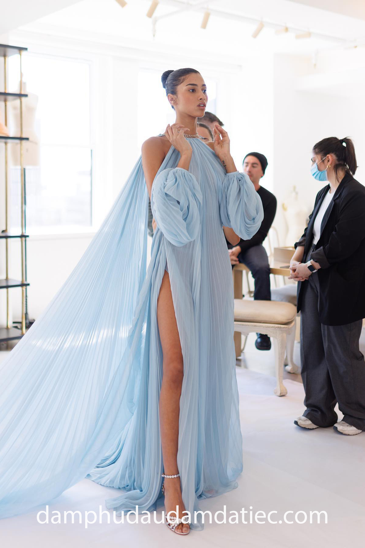 – Khách hàng tiến hành nhận đầm dạ hội.