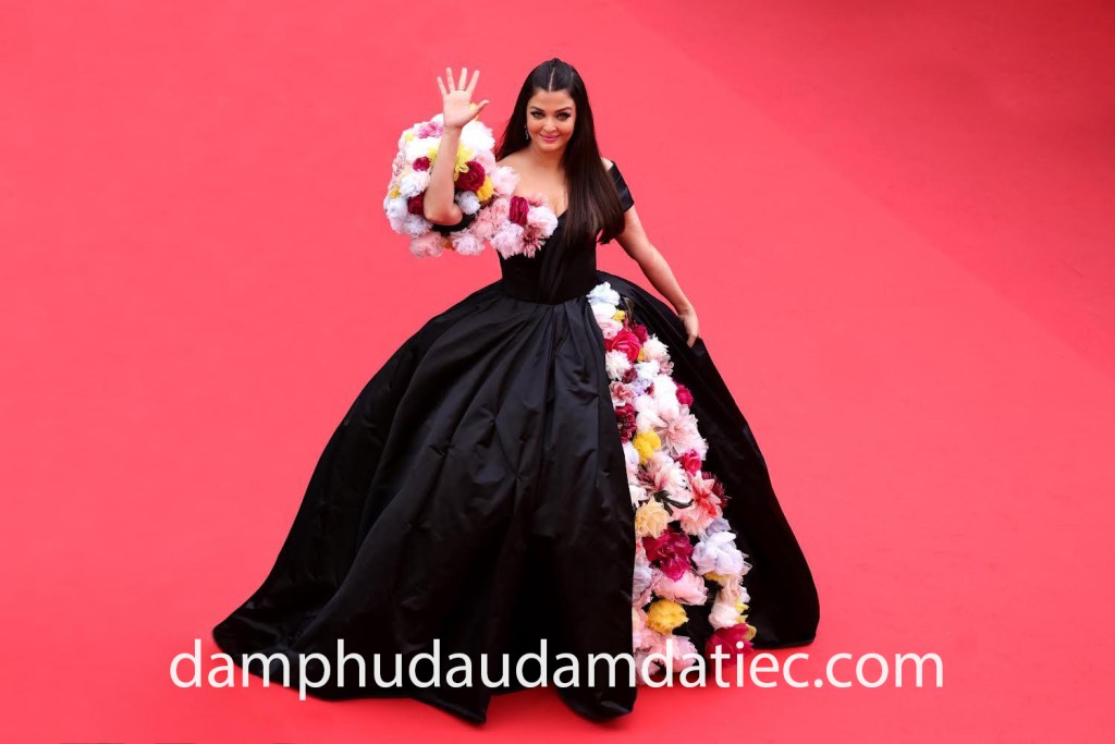 Cựu Hoa hậu Thế giới Aishwarya Rai Bachchan tiếp tục khẳng định vị thế khó thể thay đổi trong các sự kiện lừng danh. Cô diện lên người mẫu đầm dạ hội công chúa Dolce & Gabbana khiến công chúng choáng ngợp với tạo hình lộng lẫy trên tone màu đen bí ẩn, kết hợp cùng chi tiết đính kết hoa 3D đầy lãng mạn.