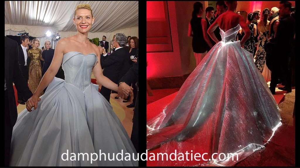 Ắt hẳn bất kỳ tín đồ thời trang nào cũng không thể quên được hình ảnh đẹp như cổ tích khi nữ diễn viên Claire Danes xuất hiện lộng lẫy trong bộ đầm dạ hội thiết kế đặc biệt đến từ nhà mốt tài năng Zac Posen. Mẫu váy thu hút sự chú ý bởi form dáng đặc sắc, chi tiết cắt may tinh tế đi cùng chất liệu thượng hạng với gam màu trung tính phản ánh rõ nét phong thái thanh lịch của nữ diễn viên.