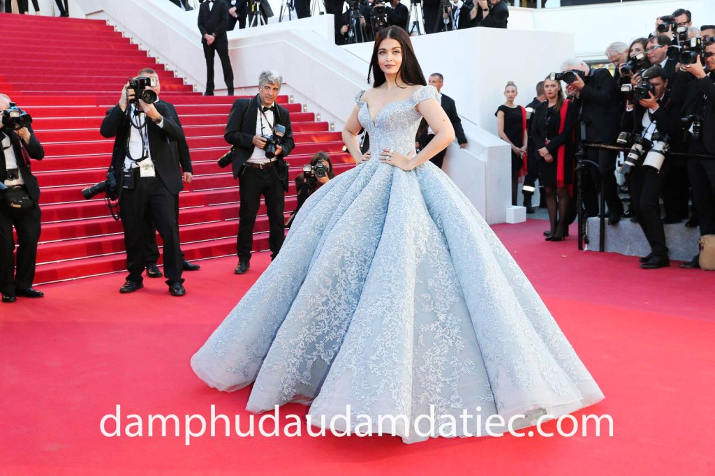Danh hiệu “Nữ hoàng thảm đỏ” xứng đáng thuộc về Hoa hậu Thế giới đẹp nhất mọi thời đại Aishwarya Rai. Tại thảm đỏ Cannes, người đẹp khiến công chúng trầm trồ không ngớt khi tái hiện hoàn hảo hình tượng nàng công chúa Lọ Lem, trong mẫu đầm dạ hội công chúa thiết kế riêng màu xanh thiên thanh ấn tượng, đính kết trang trí đắt giá đến từ thương hiệu couture Michael Cinco.