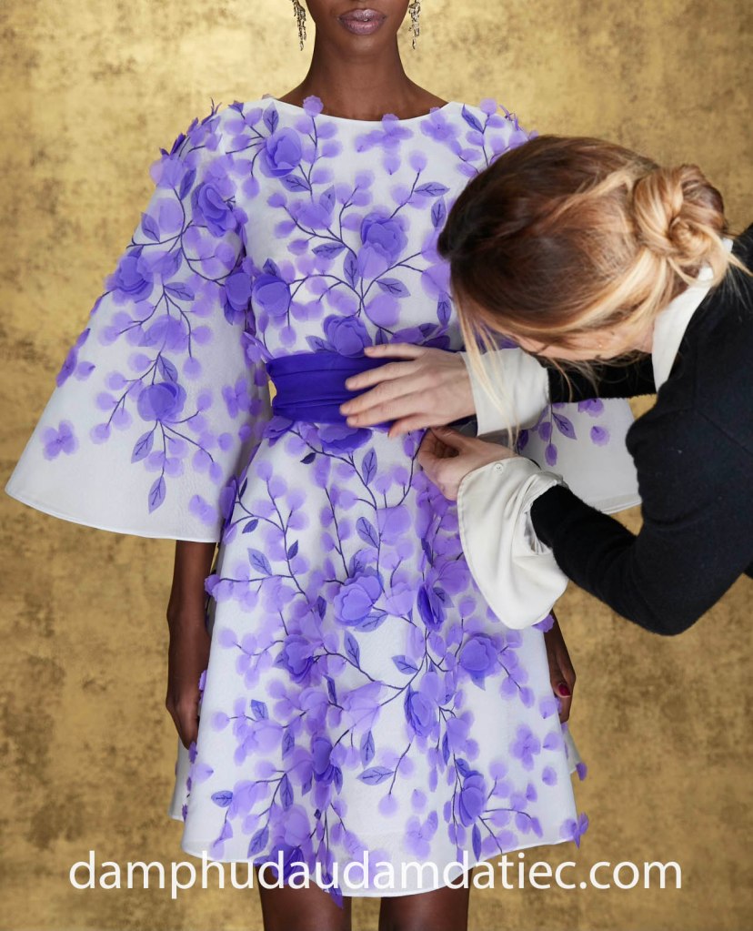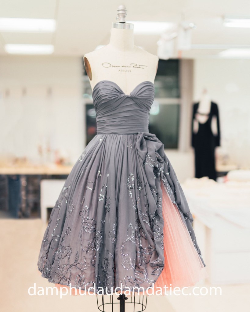 QUY TRÌNH MAY ĐO THIẾT KẾ ĐẦM DẠ HỘI NGẮN CAO CẤP