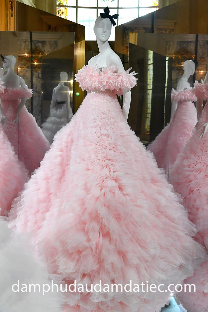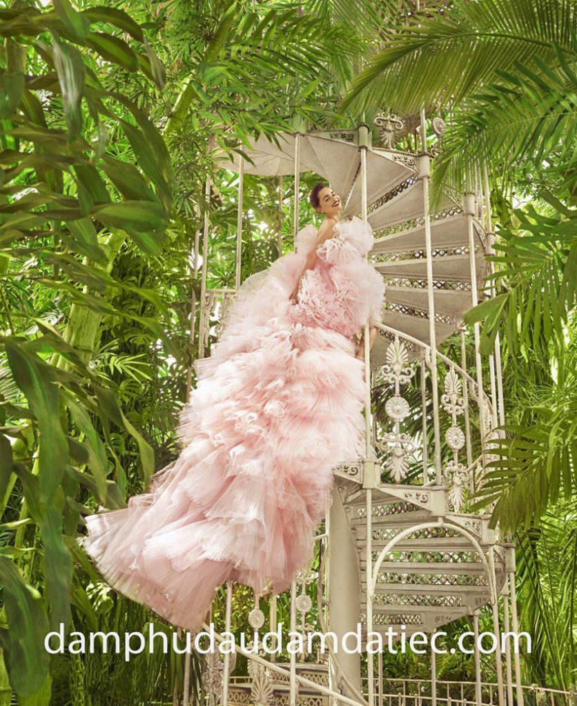 Những mẫu đầm dạ hội công chúa màu hồng luôn sẵn sàng biến giấc mơ ngọt ngào của mọi cô gái thành sự thật với sự phá cách trong cổ áo, các nếp gấp xếp bèo tầng ấn tượng cùng chi tiết đính kết trang trí đặc sắc, công phu.