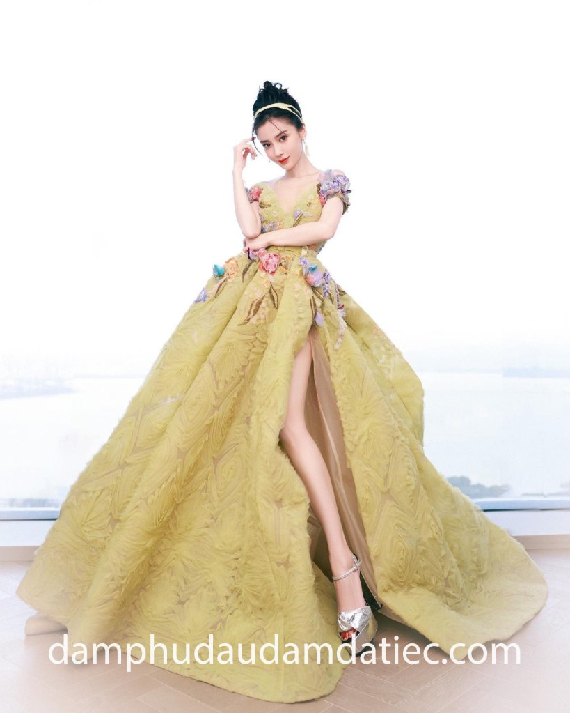 Đầm dạ hội công chúa xẻ tà Haute Couture sẽ là lựa chọn hoàn mỹ dành riêng cho những dịp sự kiện đặc biệt nhất của bạn. Thiết kế xa hoa thực hiện trên tone màu vàng rêu lạ mắt được xử lý chất liệu công phu, kết hợp cùng chi tiết trang trí đắt giá sẽ mang đến cho bạn những trải nghiệm “độc nhất vô nhị” chưa từng thấy.