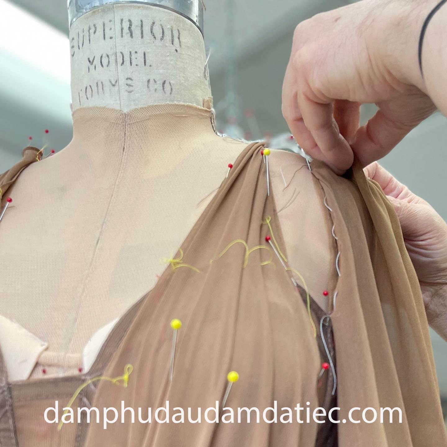 QUY TRÌNH MAY ĐO THIẾT KẾ ĐẦM DẠ HỘI XẺ TÀ CAO CẤP