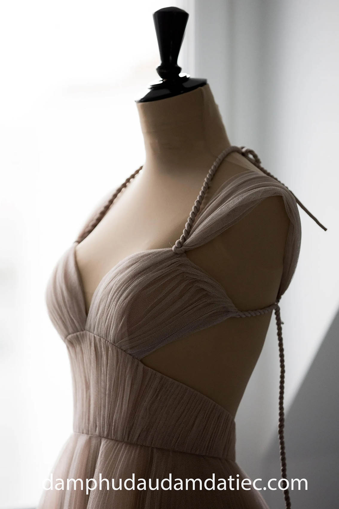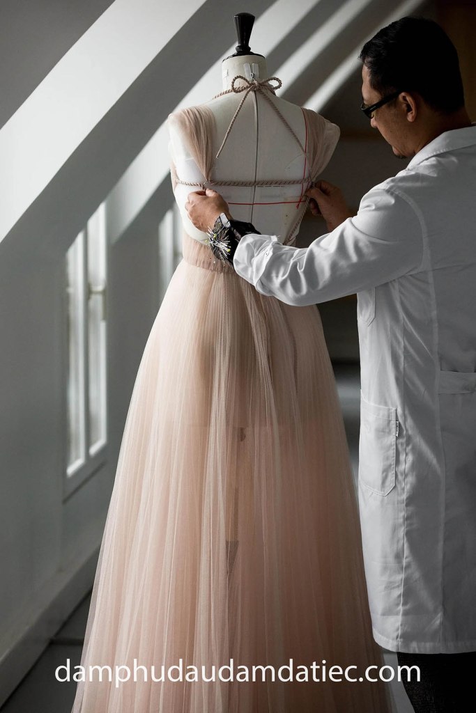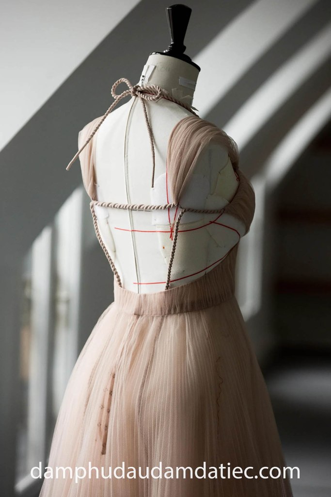 QUY TRÌNH MAY ĐO THIẾT KẾ ĐẦM DẠ HỘI XUYÊN THẤU CAO CẤP