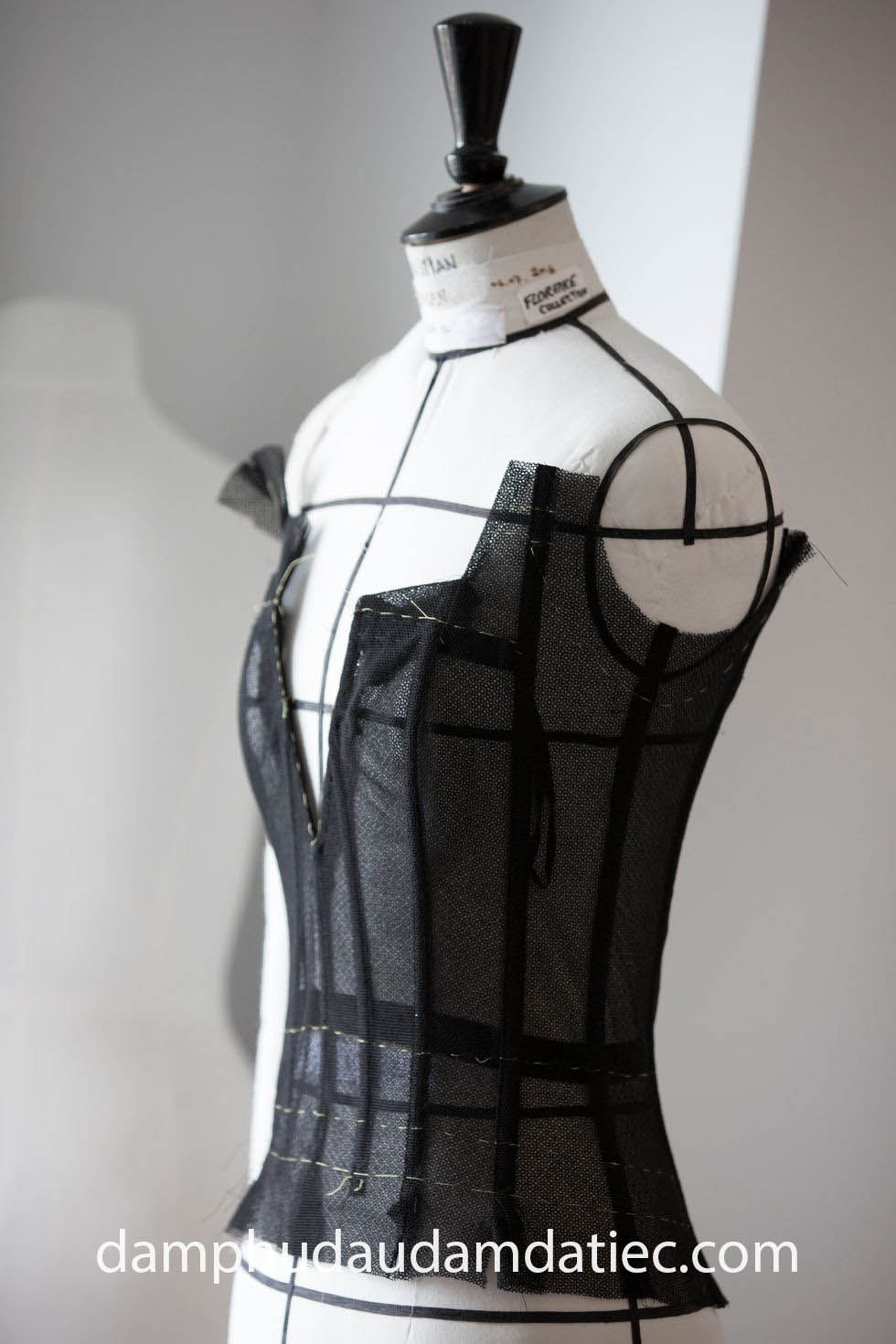 Tiến hành dựng phom dáng theo số đo và tỉ lệ cơ thể của khách.