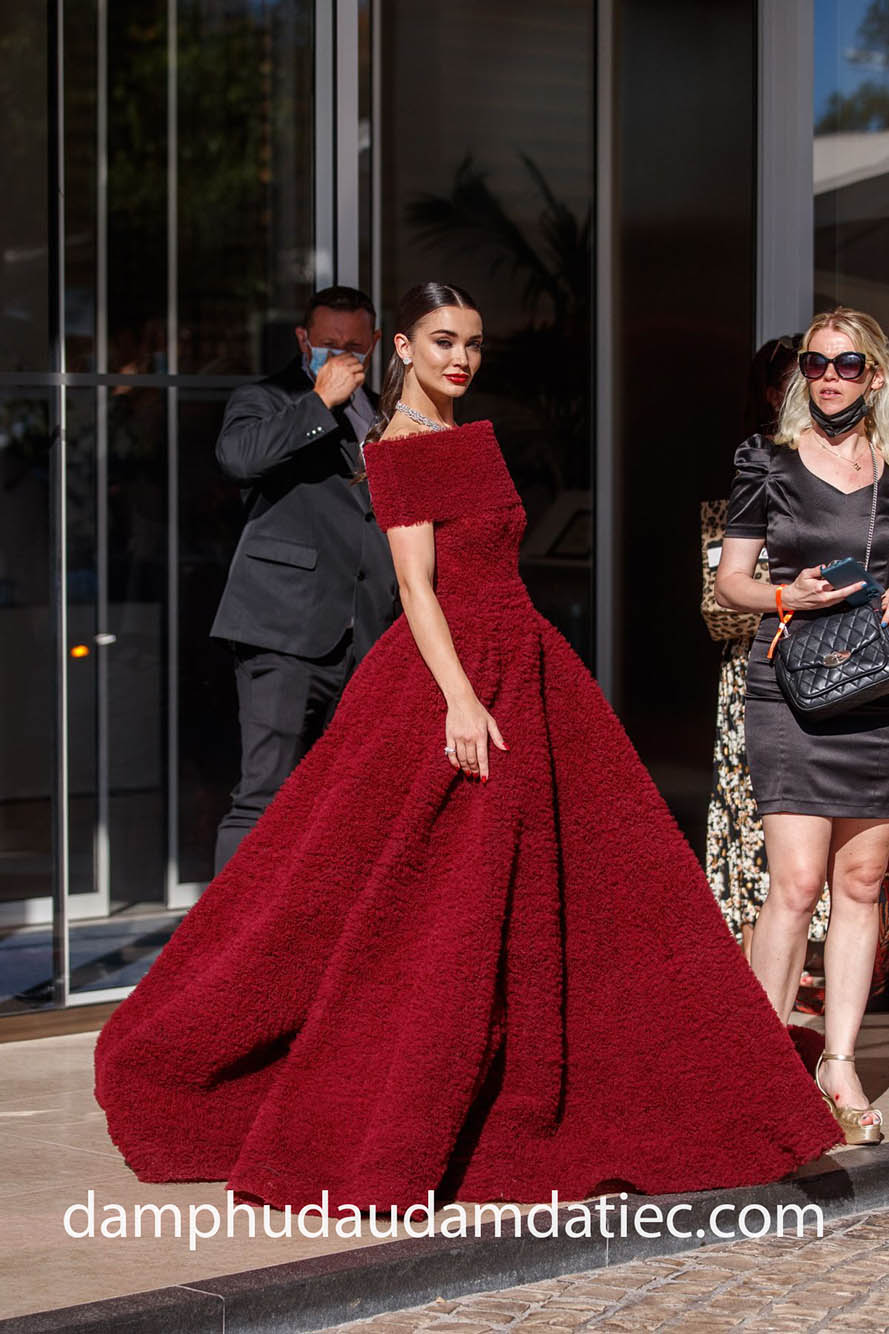 Đặc biệt nhất có thể kể đến những mẫu đầm dạ hội mùa đông xếp bèo công phu, với thiết kế trễ vai ngang quý phái đi cùng tùng váy bèo màu đỏ xoè phồng hoành tráng, giúp bạn chiếm trọn mọi spotlight trong những sự kiện có quy mô lớn.