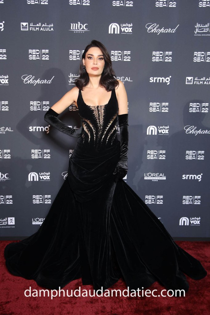 Phổ biến nhất có thể kể đến kiểu đầm dạ hội 2 trong 1 có cổ xẻ V với tay áo sát nách thoải mái, linh hoạt được đính kết đầy bắt mắt.