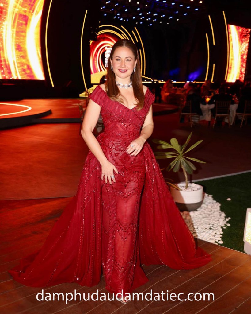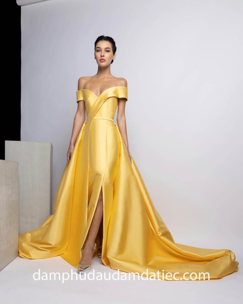 Đầm dạ hội 2 trong 1 trễ vai giúp khoe xương quai xanh tuyệt mỹ, đồng thời mang đến cho quý cô trung niên sự sang trọng, quý phái mà lại vô cùng quyến rũ.