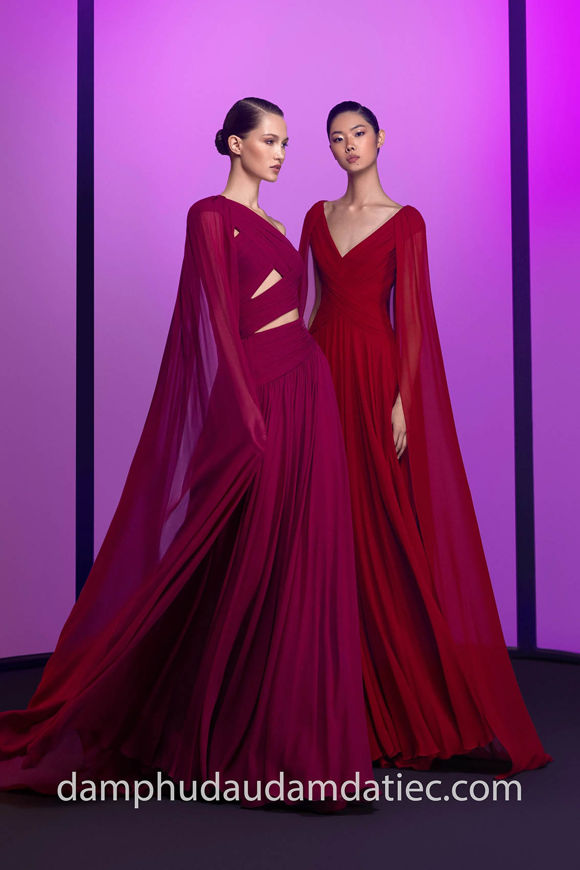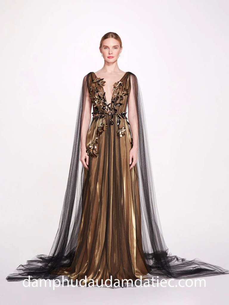 Có thể nói, đầm dạ hội cape dường như được sinh ra để dành cho mùa thu lãng mạn nhất trong năm. Những thiết kế đậm chất thơ mộng, nổi bật với chi tiết áo choàng dài thướt tha, mang đến cho các quý cô vẻ ngoài sang trọng và quý phái của những Công nương vương giả, hay một Nữ thần uy quyền bước ra từ các trang sách cổ.