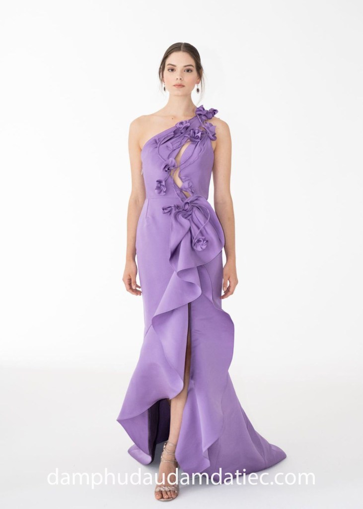 Trong bầu không khí vô cùng lãng mạn, những thiết kế váy dạ hội xếp bèo tầng sẽ là lựa chọn tươi mới và đầy phá cách cho mùa thu năm nay. Ứng dụng kỹ thuật draping để tạo dáng điệu đà trên đường cong cơ thể, chi tiết bất đối xứng mang yếu tố bất ngờ cùng các gam màu mới lạ như tím lilac, xanh khói, vàng đồng, hay màu da nude thời thượng,.. hứa hẹn sẽ mang đến cho bạn những khoảnh khắc ấn tượng nhất trong các sự kiện đặc biệt.