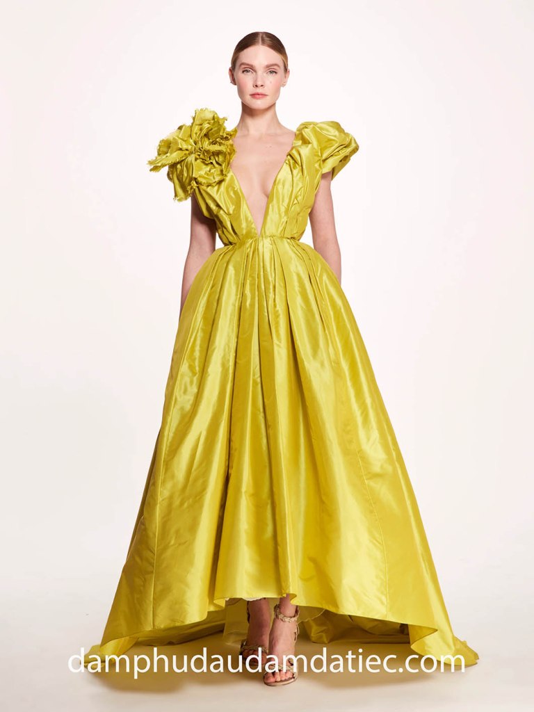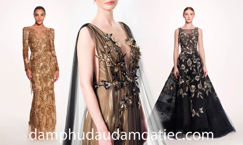 Và còn gì tuyệt vời hơn khi bạn diện lên người những mẫu đầm dự tiệc ánh kim rực rỡ, lấy cảm hứng từ màu nắng rót mật hay màu lá vàng ươm của mùa thu. Kết hợp duyên dáng cùng các chi tiết trang trí hoa lá 3D hay kỹ thuật draping điệu nghệ sẽ giúp bạn chiếm trọn mọi ánh nhìn trong các đêm tiệc sang trọng.
