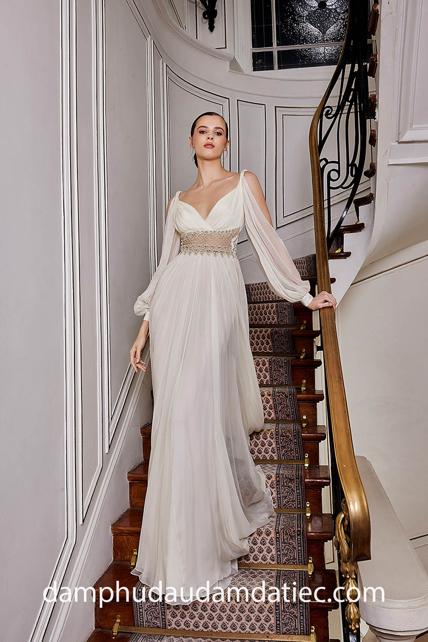 VÁY DỰ TIỆC CAPELET QUÝ PHÁI